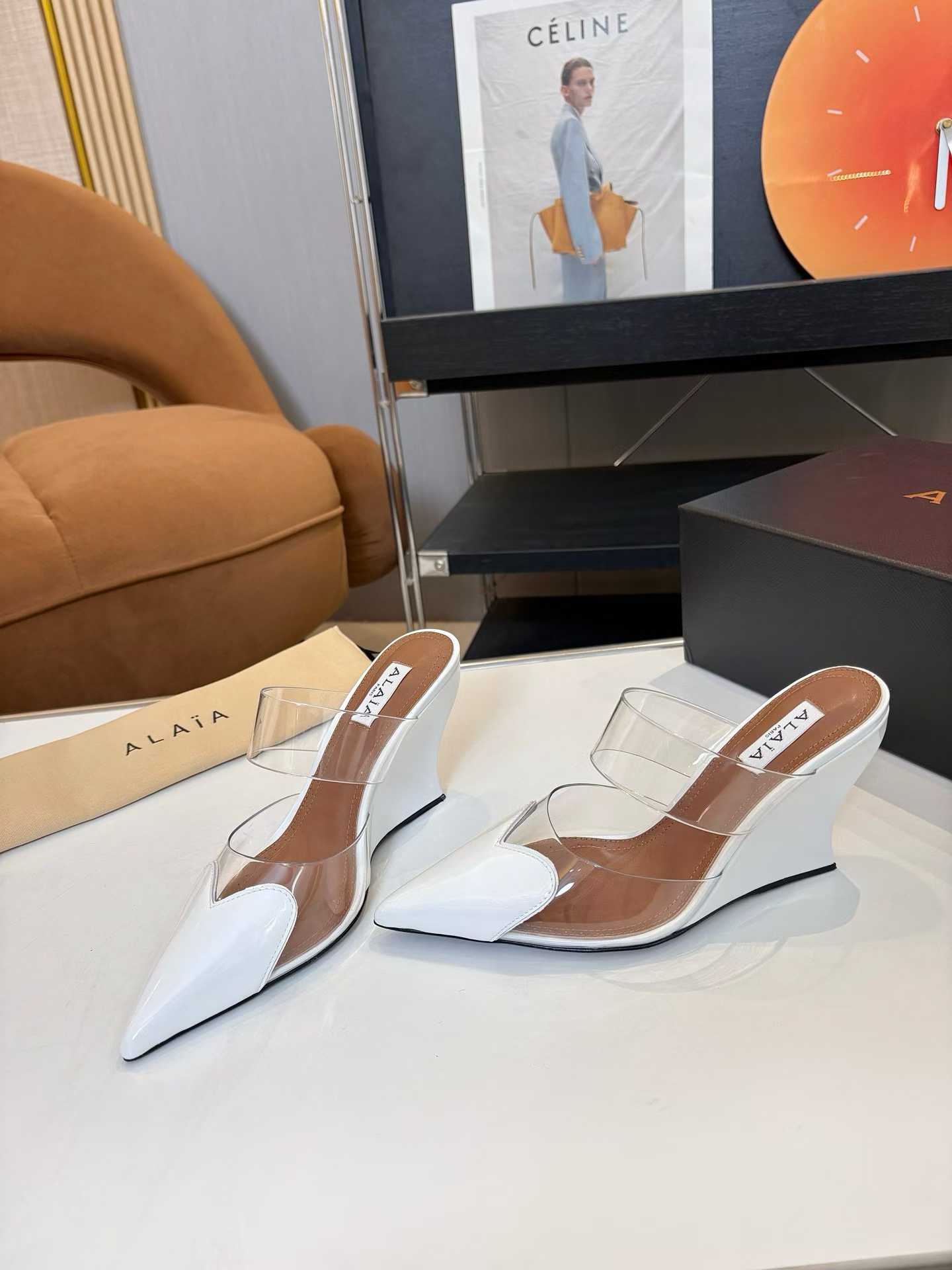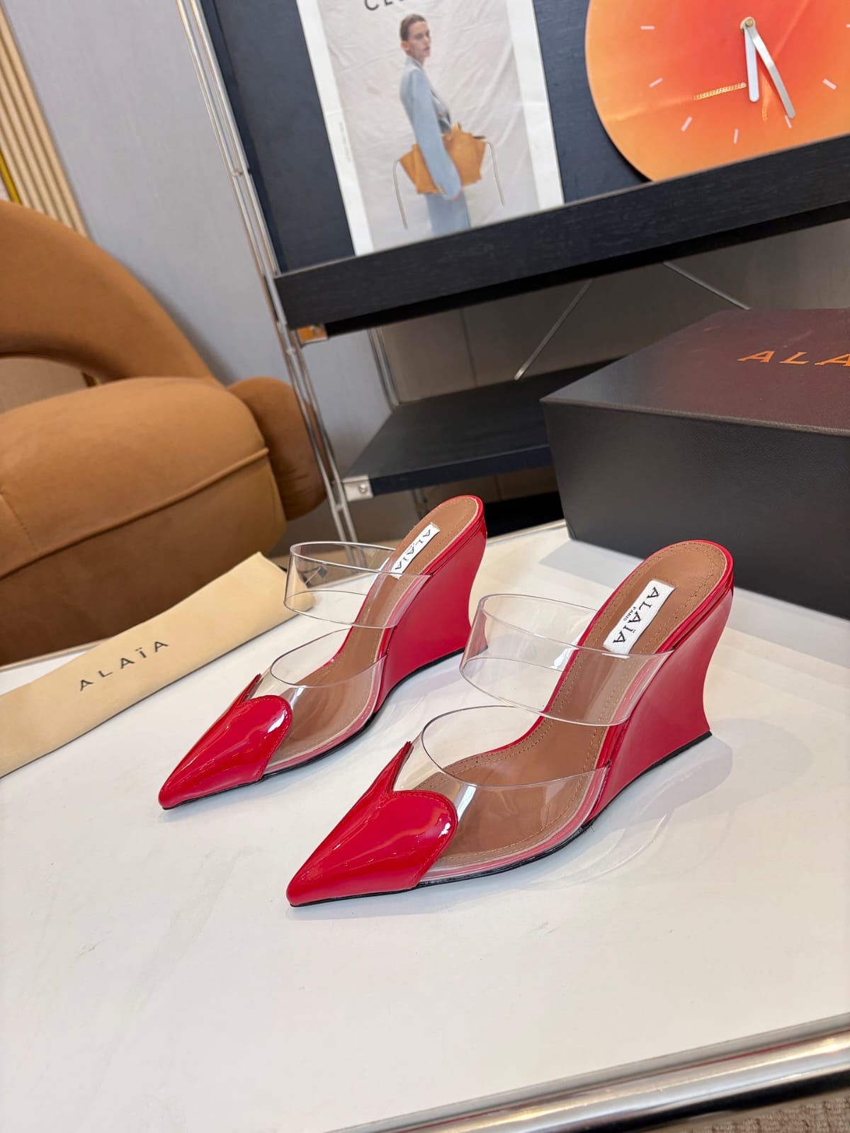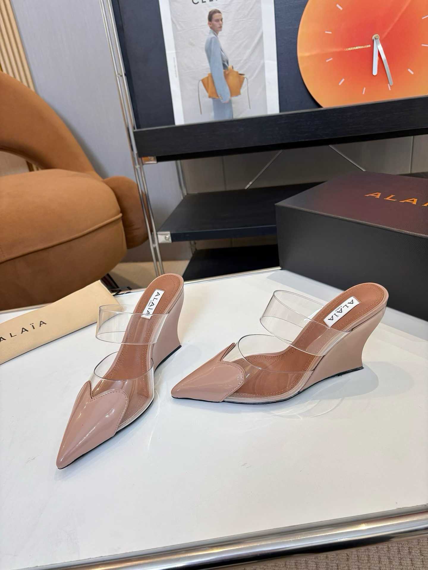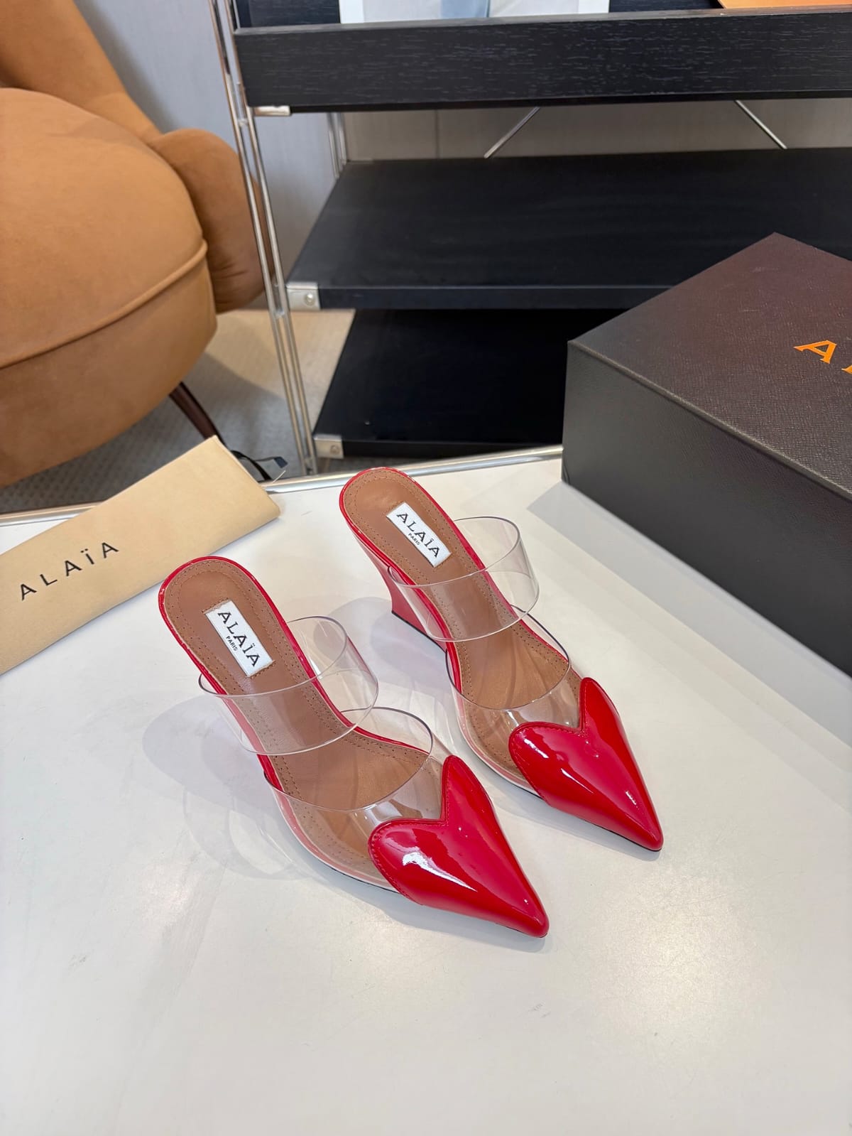The Alaïa Le Cœur Mules embody sculptural elegance and modern femininity. Crafted from premium leather and designed with Alaïa’s signature heart-shaped detailing, these refined mules combine artistic craftsmanship with effortless sophistication. The sleek open-back silhouette ensures comfort while maintaining a bold couture aesthetic, making them perfect for both daytime elegance and evening occasions.