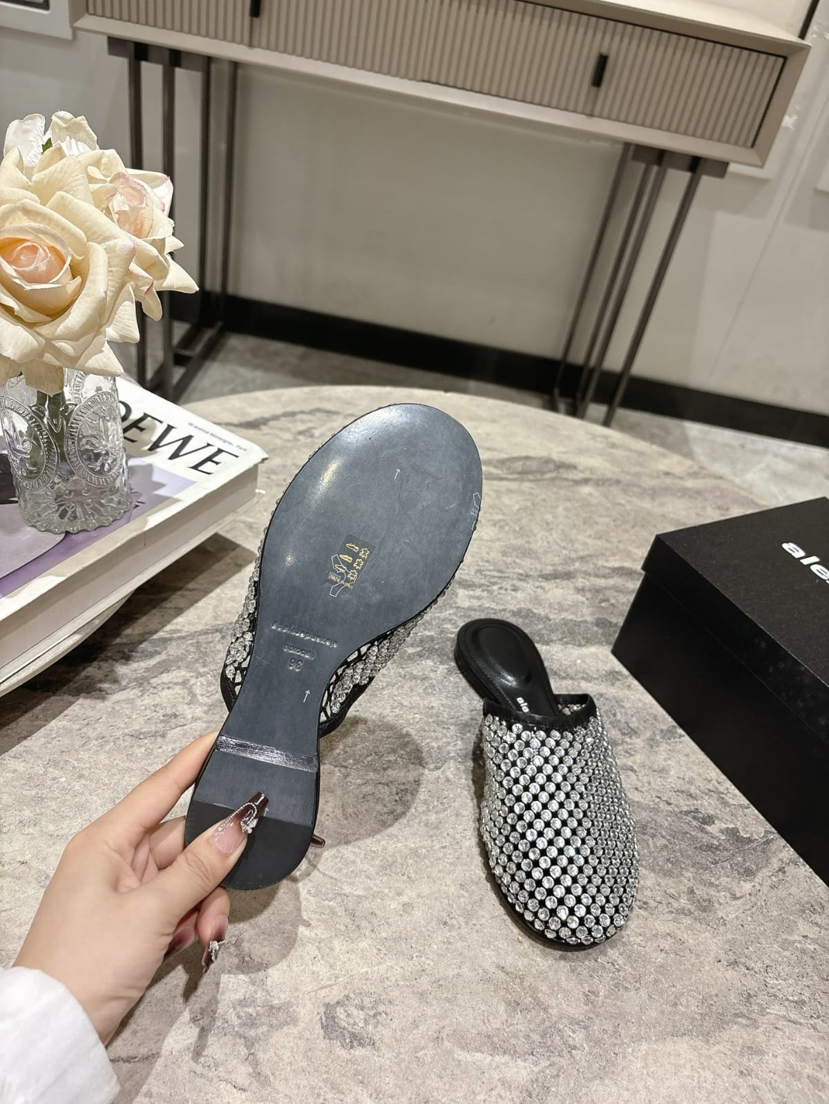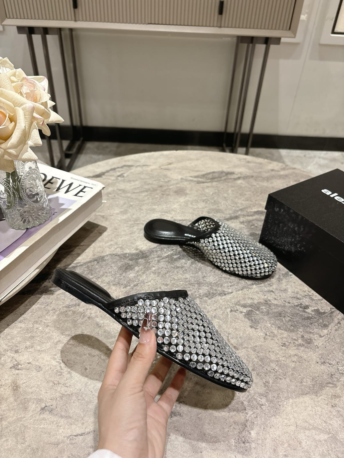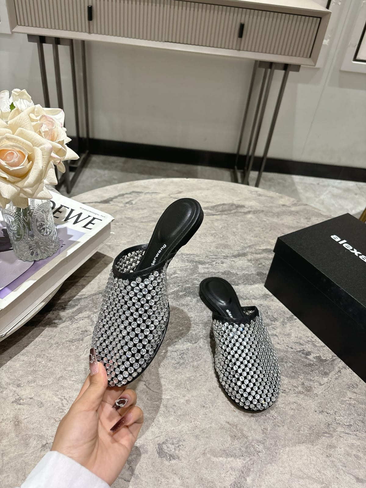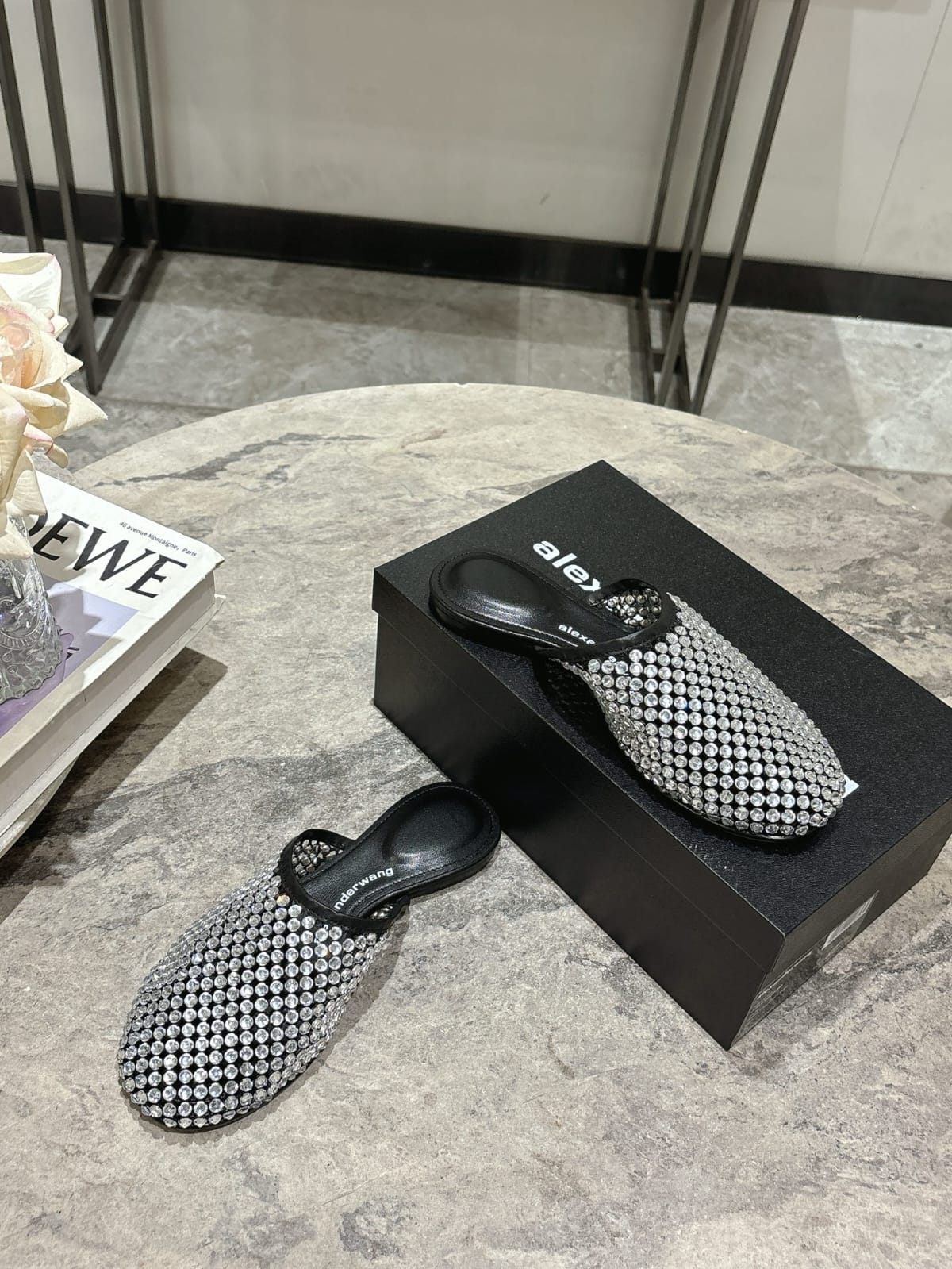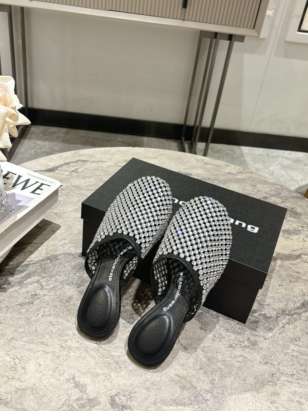 Alexander Wang Sienna mules with crystal embellishments, offering a glamorous touch to modern footwear.