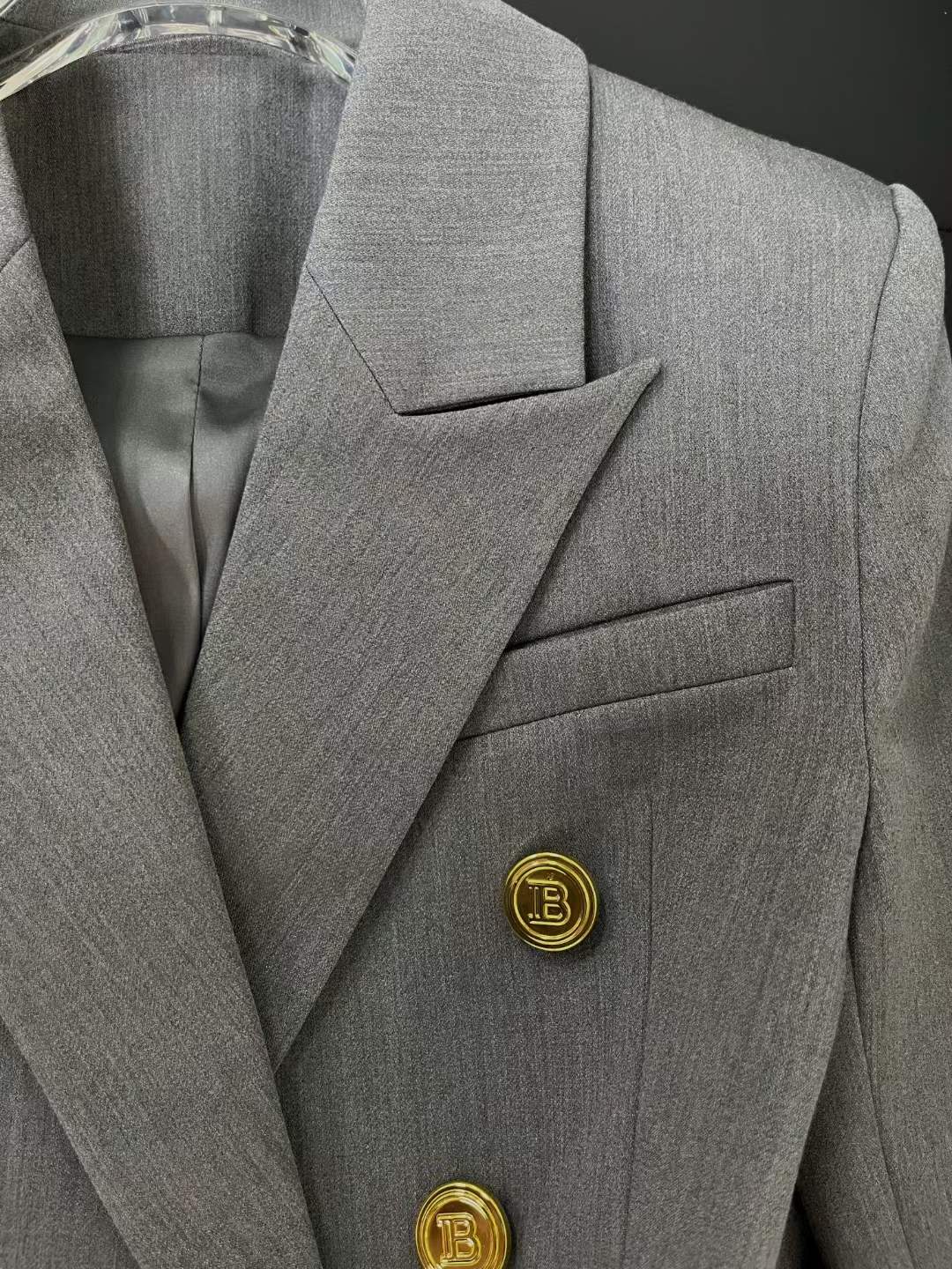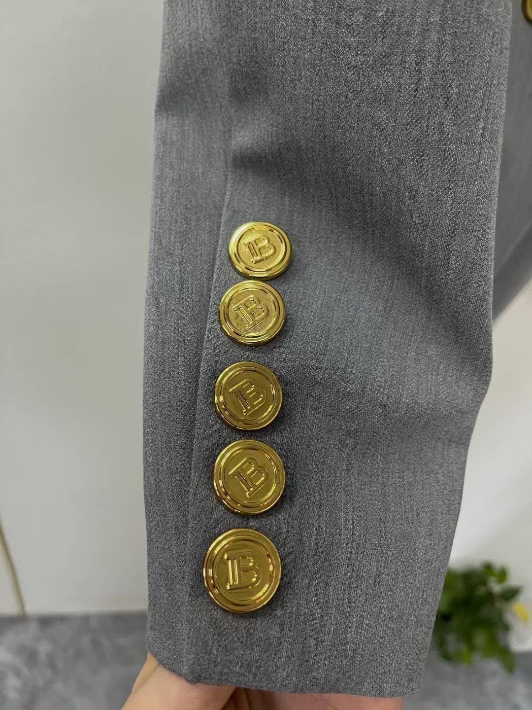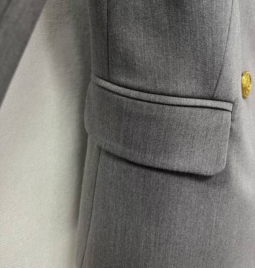 A timeless wardrobe staple, this Balmain classic gray double-breasted blazer showcases the brand’s iconic tailoring and sophisticated design. Crafted for a structured fit with signature button detailing, it effortlessly transitions from professional wear to evening styling.