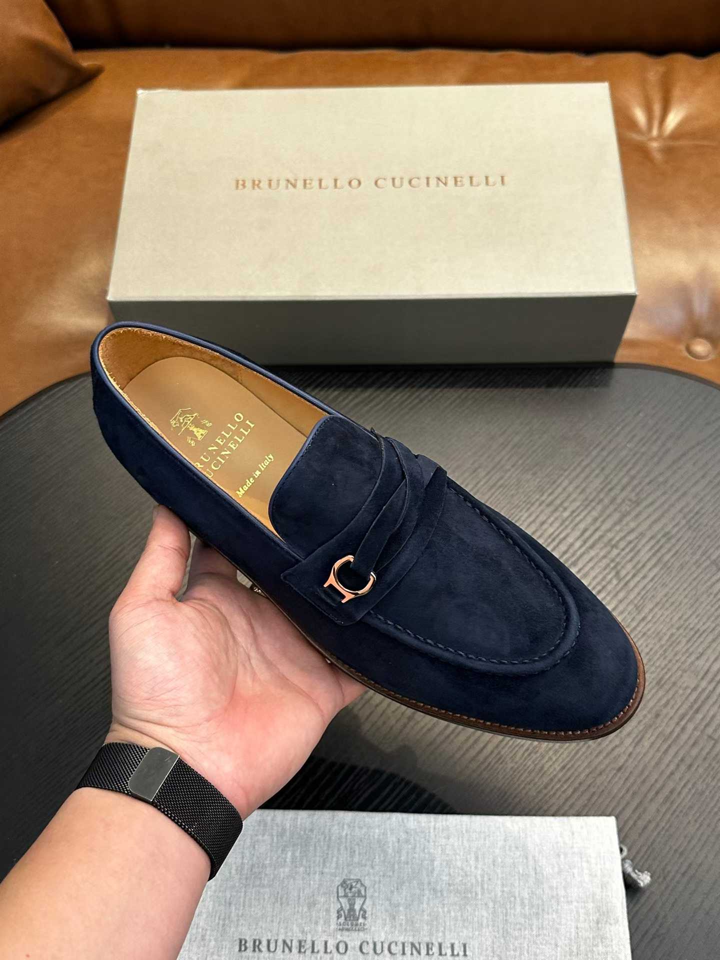 Brunello Cucinelli Blue Suede Loafers embody understated elegance and Italian craftsmanship. Made from supple suede with a refined silhouette, these loafers offer effortless sophistication ideal for both smart-casual and formal ensembles.