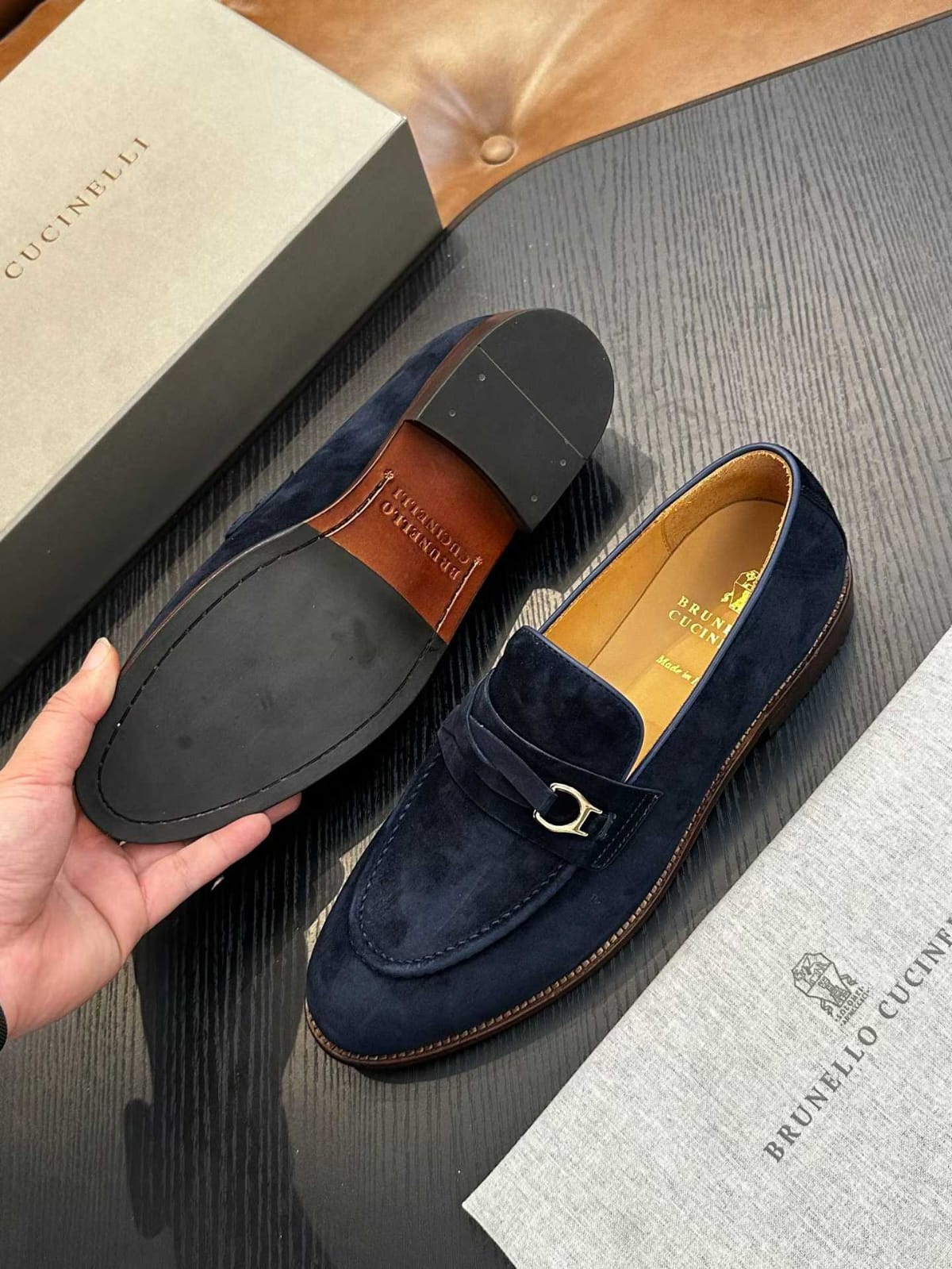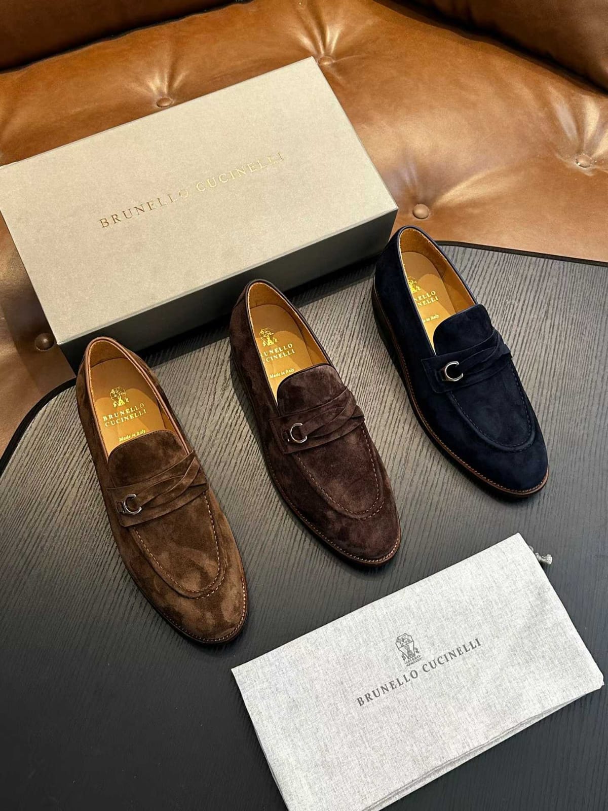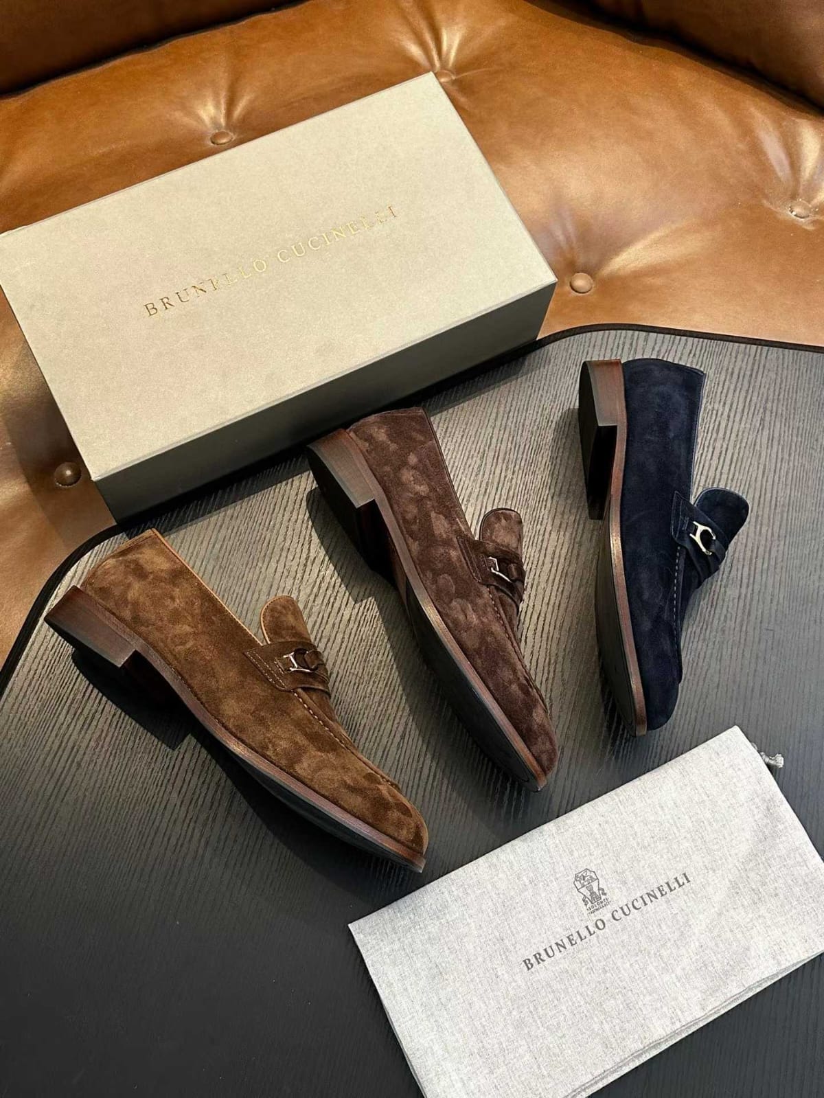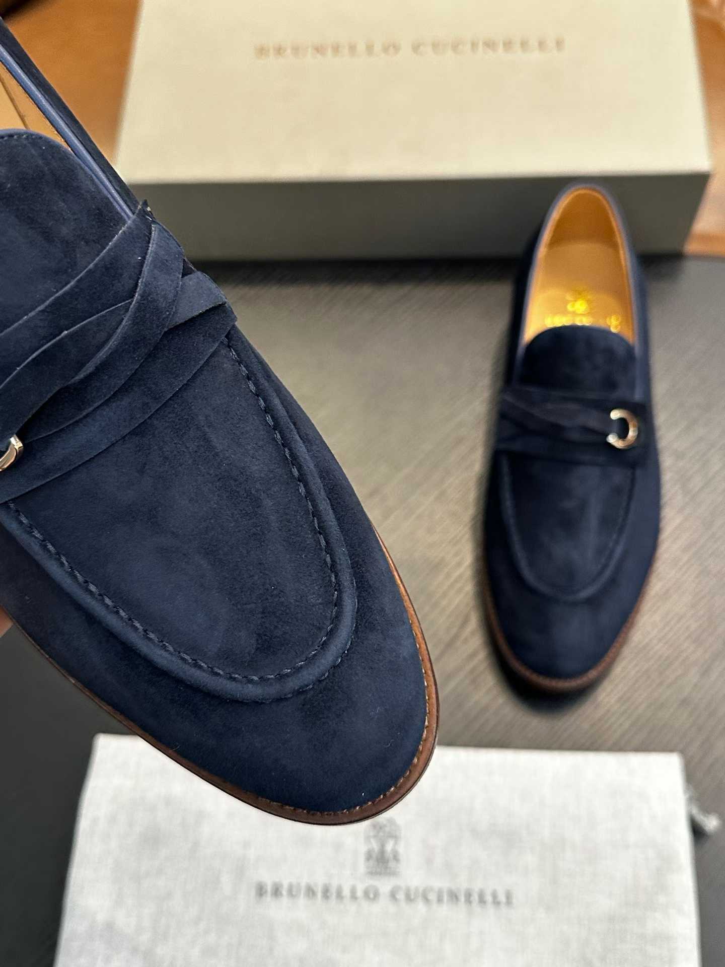 Shop Brunello Cucinelli blue suede loafers for men. Timeless Italian craftsmanship with refined elegance.