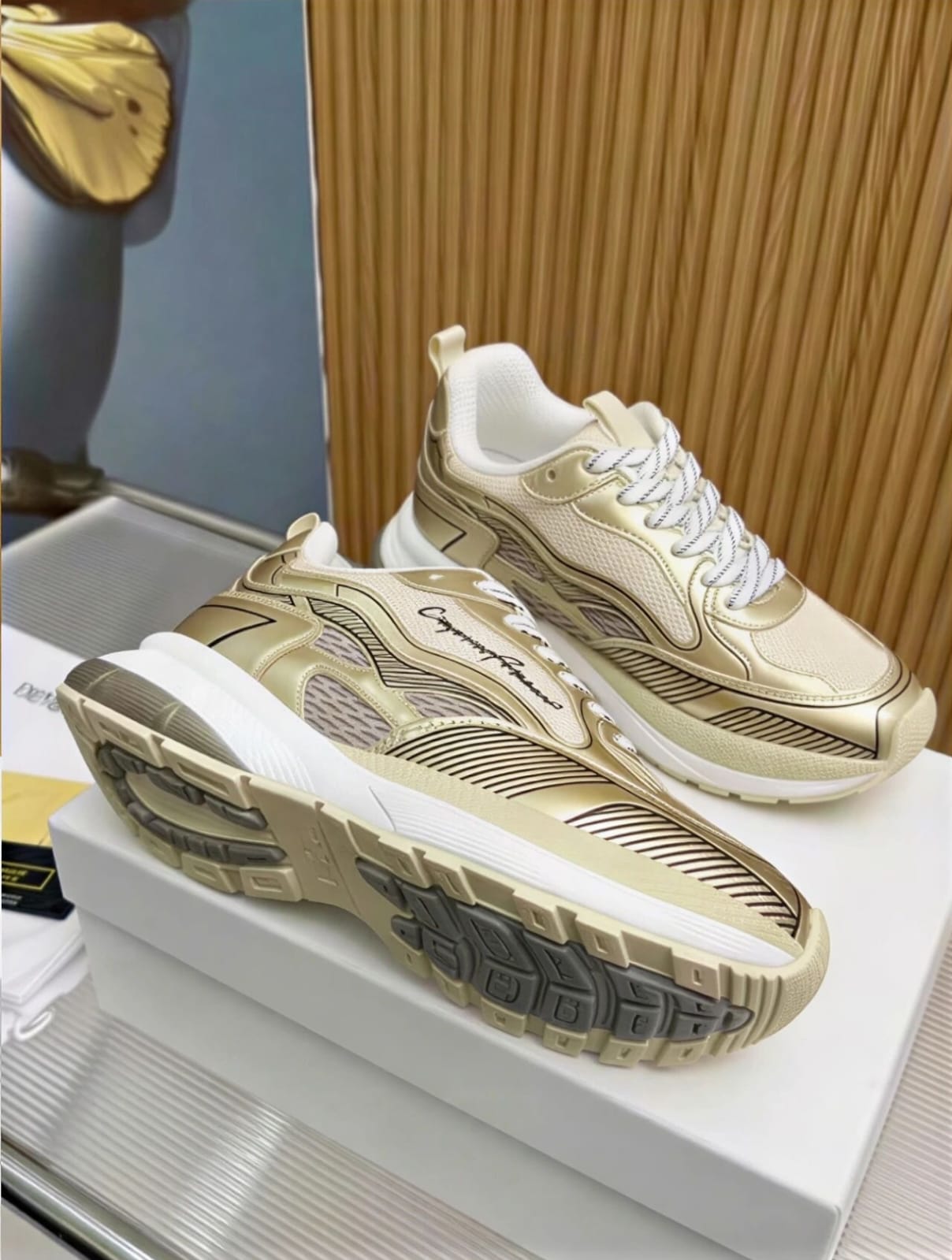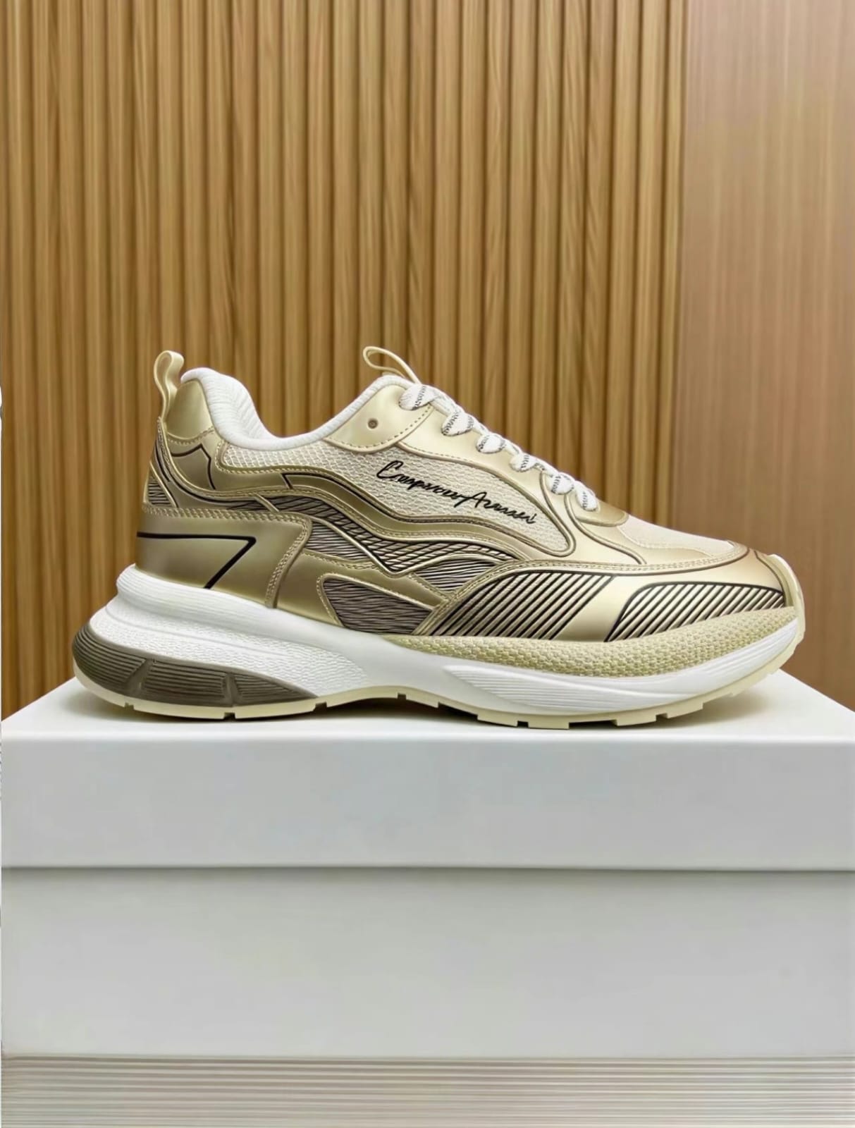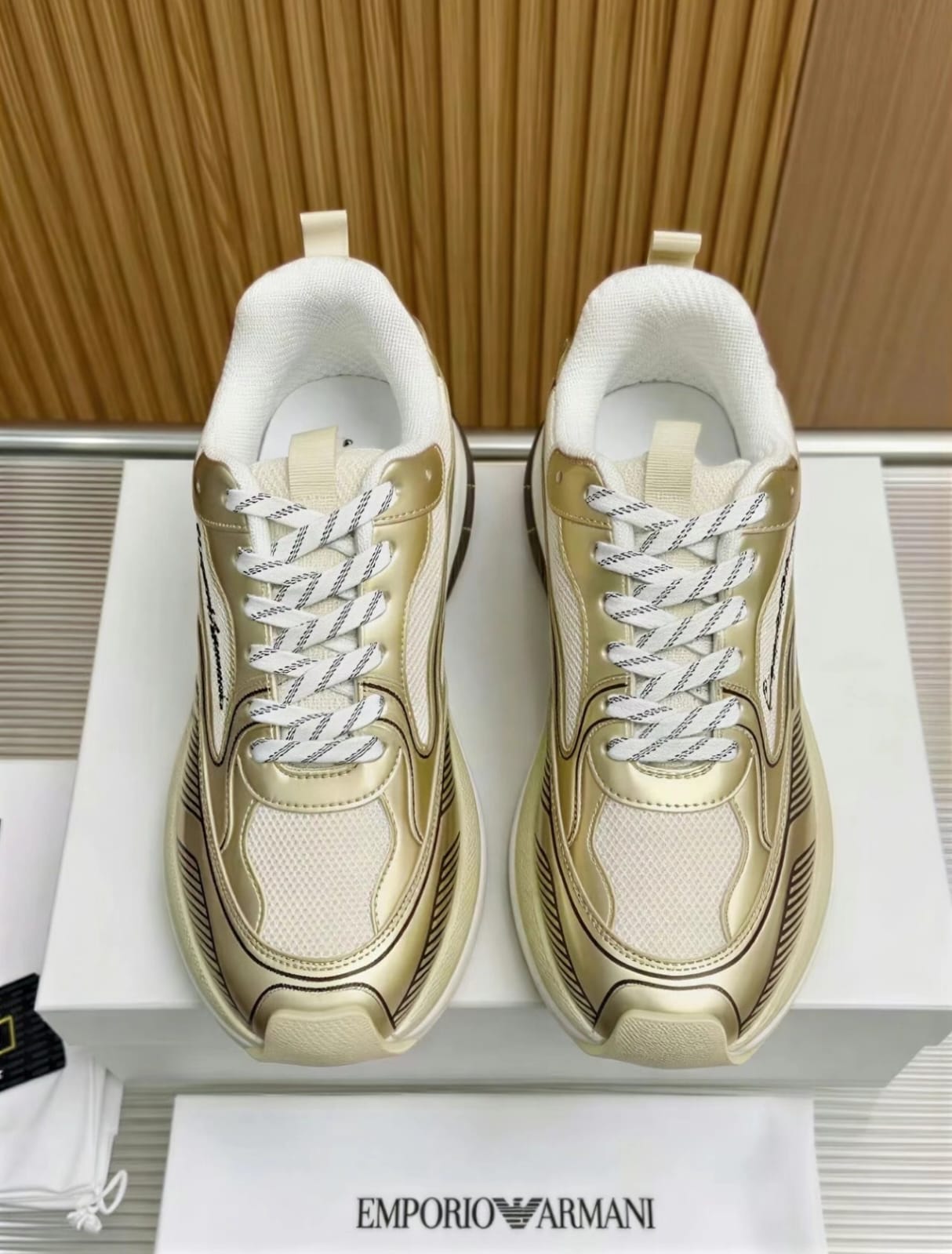 Emporio Armani mesh sneakers offer a sleek blend of comfort and modern style. Crafted with breathable mesh and lightweight construction, they are designed for everyday wear with a sporty luxury aesthetic.