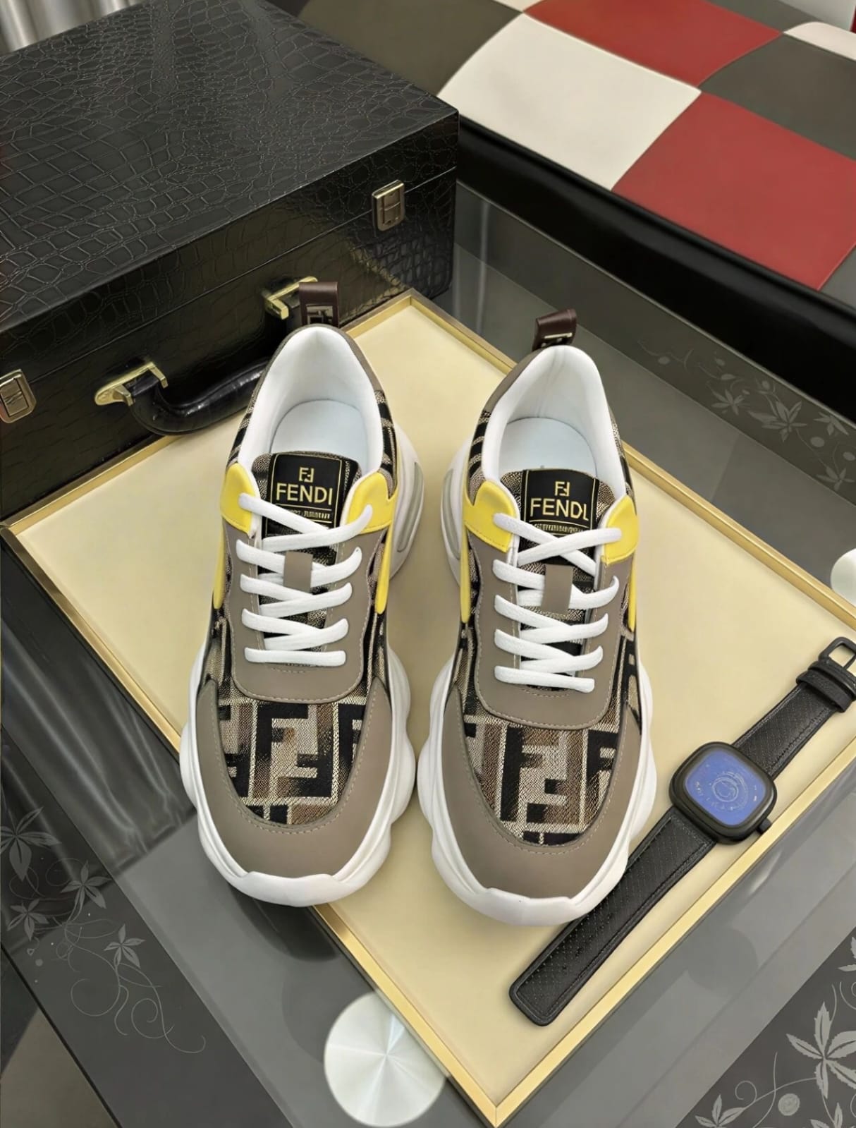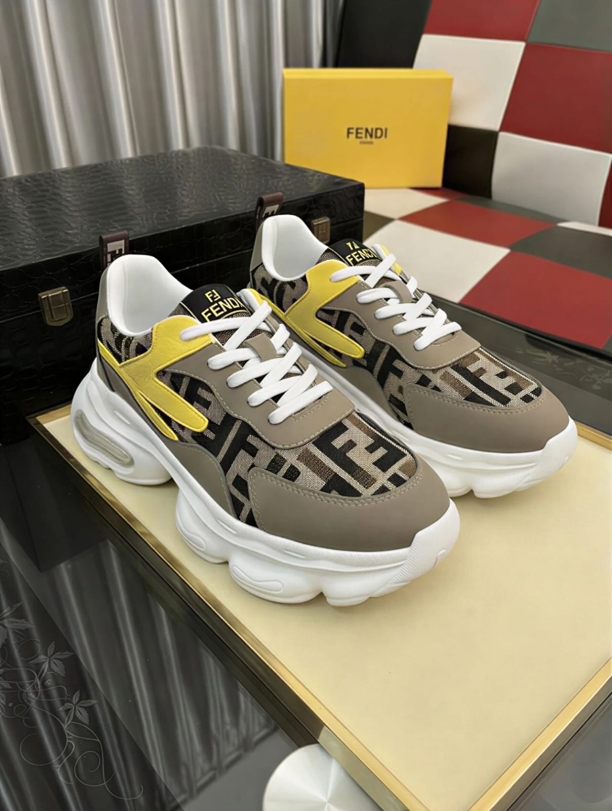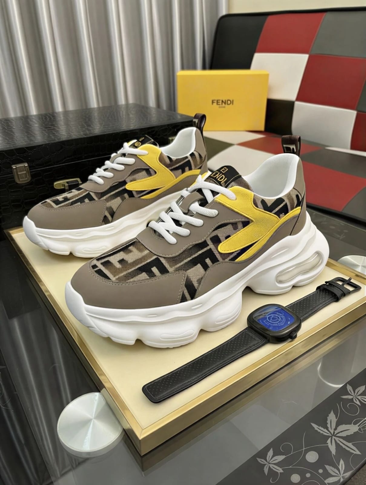 The Fendi Flow Sneakers combine sporty performance aesthetics with elevated Italian craftsmanship. Featuring a dynamic silhouette with lightweight construction and signature Fendi detailing, these sneakers offer modern comfort with bold luxury appeal.