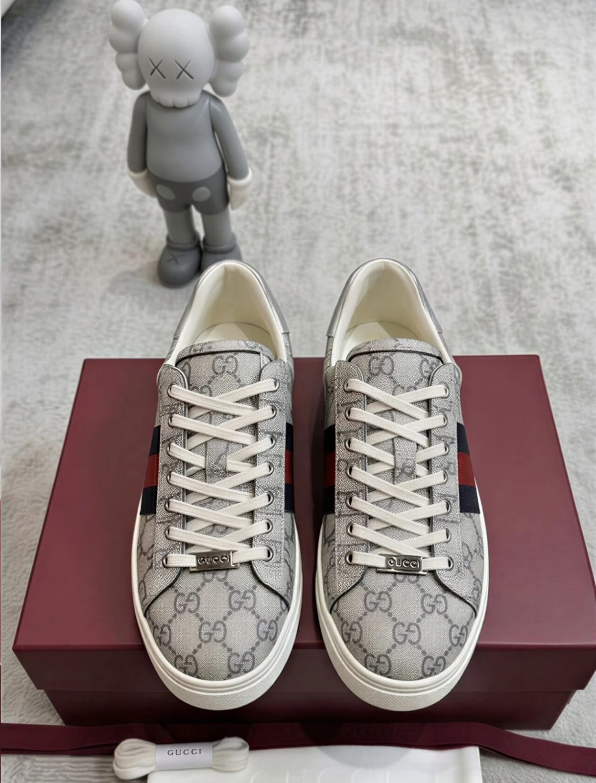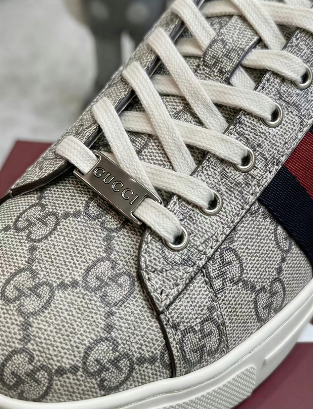 Gucci Ace sneakers in GG Supreme canvas featuring iconic monogram and luxury sneaker design.