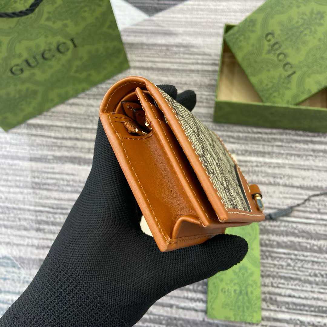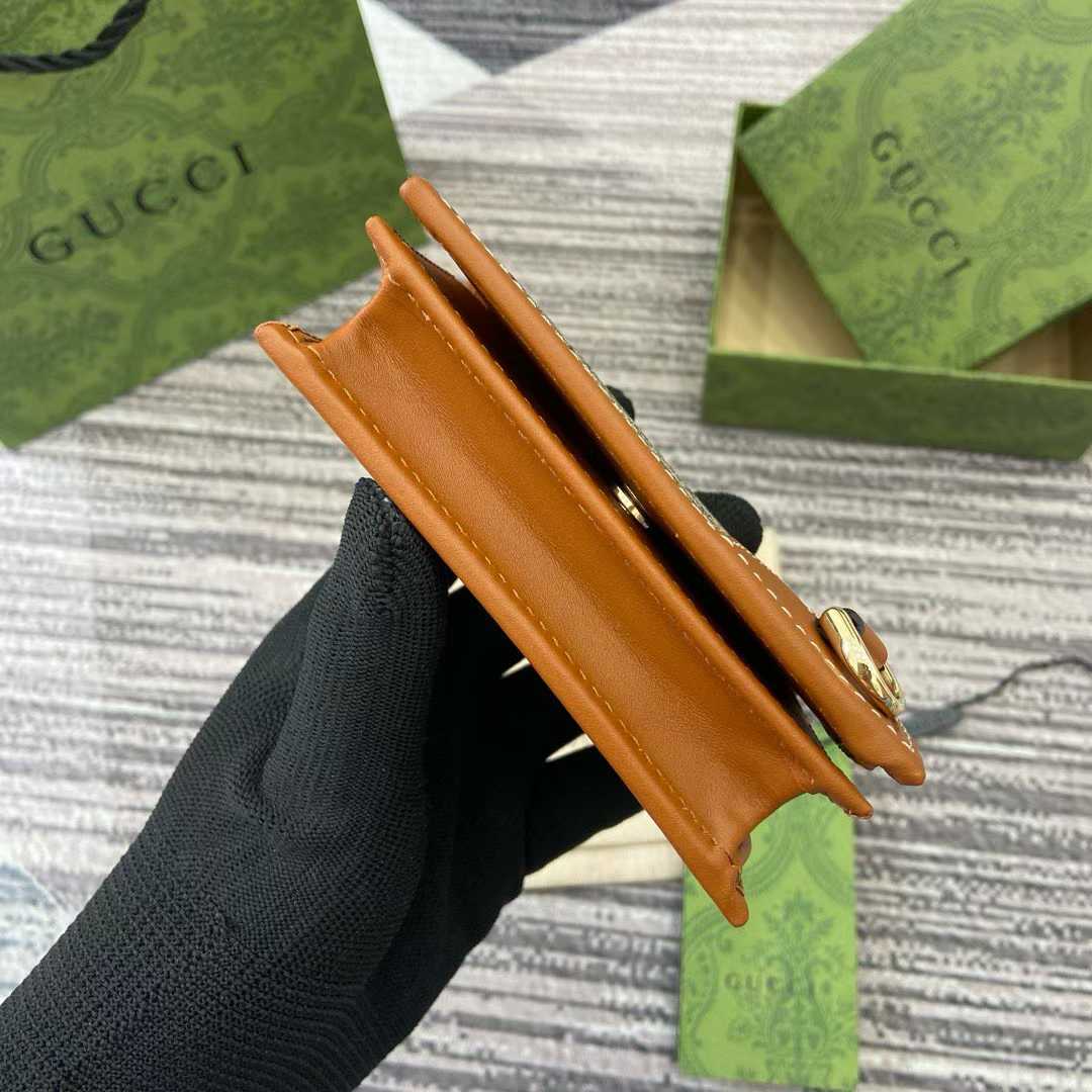 Gucci GG Supreme canvas mini wallet with compact luxury design.