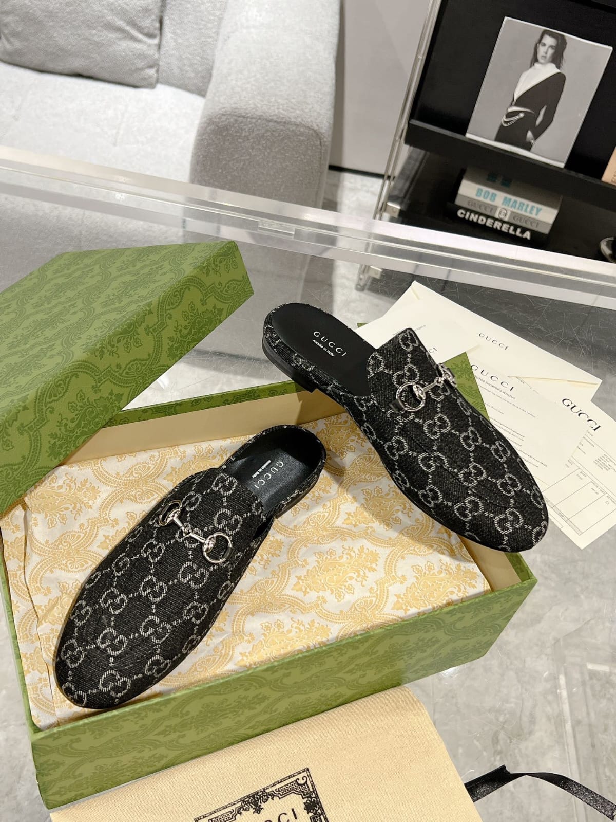 The Gucci Princetown GG Denim Slippers feature the iconic horsebit detail and signature GG monogram in a relaxed slip-on silhouette. Designed for effortless chic, they merge heritage design with modern comfort.