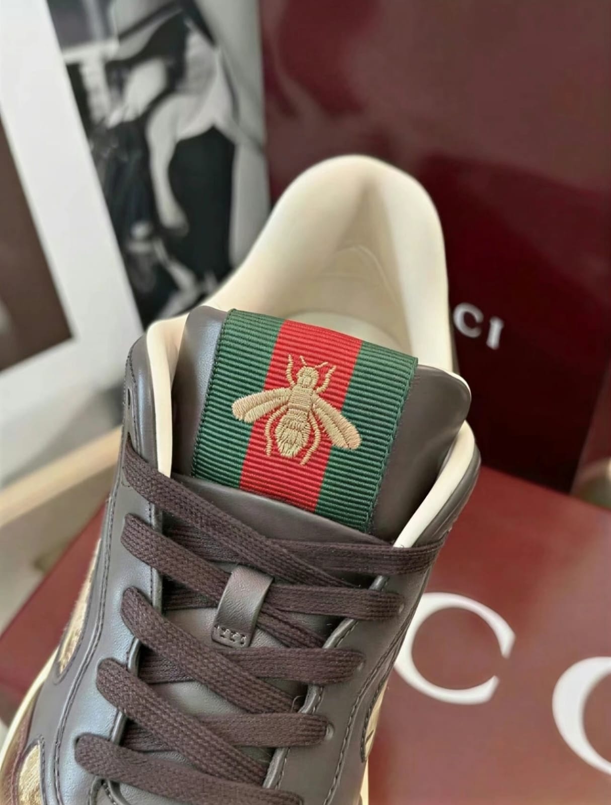 Gucci Re-Web Sneakers in Beige and Dark Brown GG Canvas
