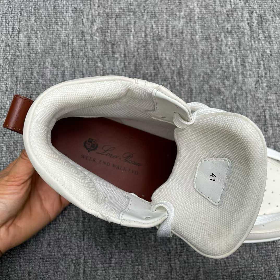 The Loro Piana Newport Walk High-Top Sneakers elevate casual footwear with refined Italian craftsmanship. Made from supple suede and premium leather, the high-top design offers added support while maintaining a clean, contemporary aesthetic. Perfect for sophisticated off-duty styling.