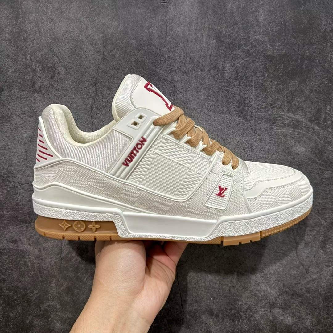 Louis Vuitton LV Trainer Sneakers (White & Beige)
