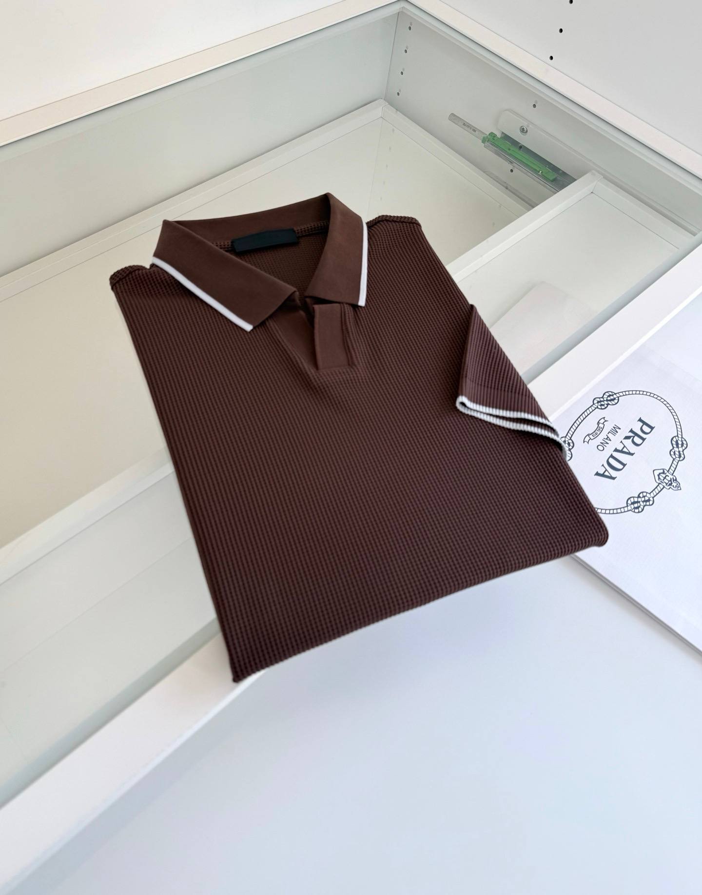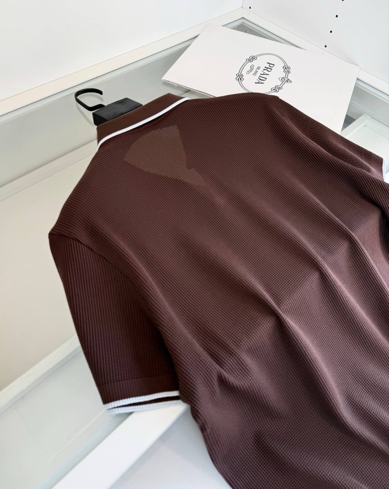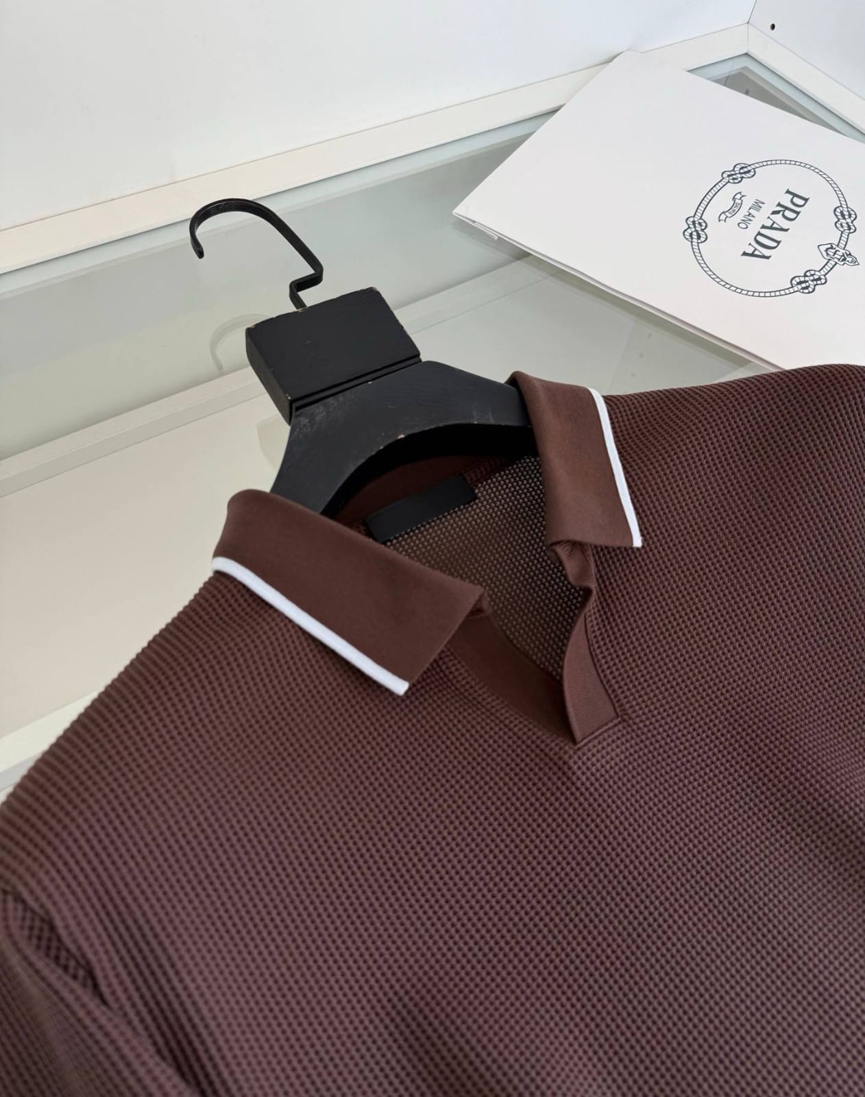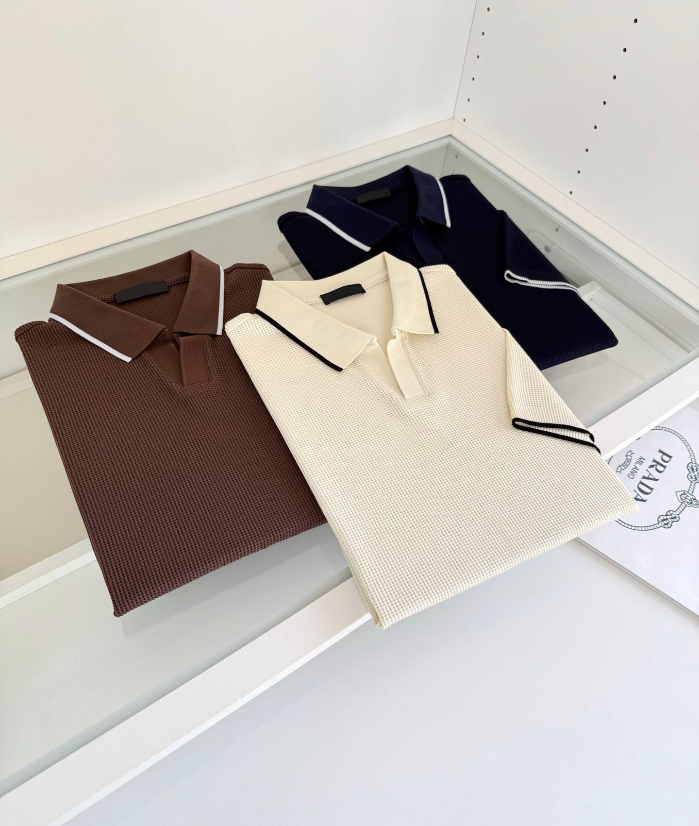 Prada knitted polo shirts deliver refined casual style with premium craftsmanship. Crafted from soft knit fabric with a classic polo collar, they offer comfort while maintaining a sophisticated designer aesthetic.
