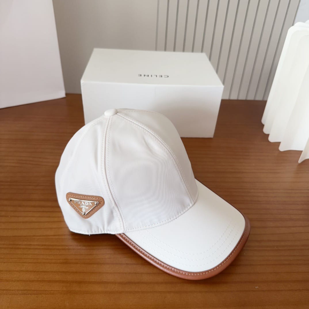 Discover Prada Re-Nylon baseball caps. Sustainable luxury headwear with iconic triangle logo.