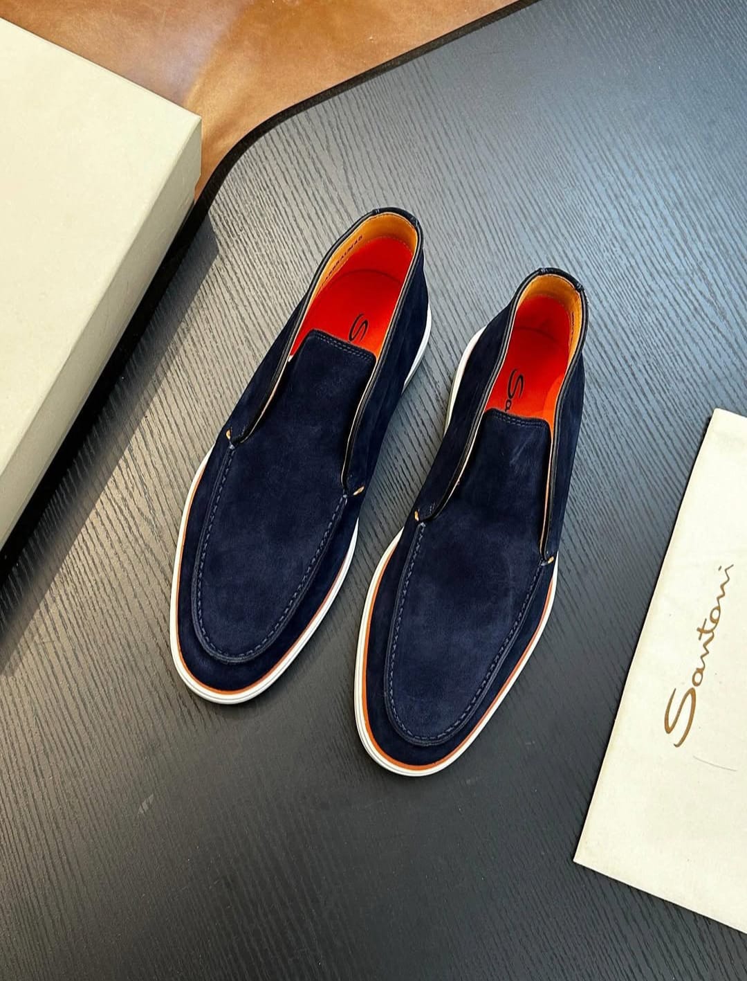 Santoni Suede Slip-On Loafers reflect refined Italian craftsmanship and effortless sophistication. Crafted from soft premium suede with a streamlined silhouette, these loafers offer lightweight comfort and timeless versatility. Ideal for smart-casual or relaxed formal styling, they embody understated luxury.