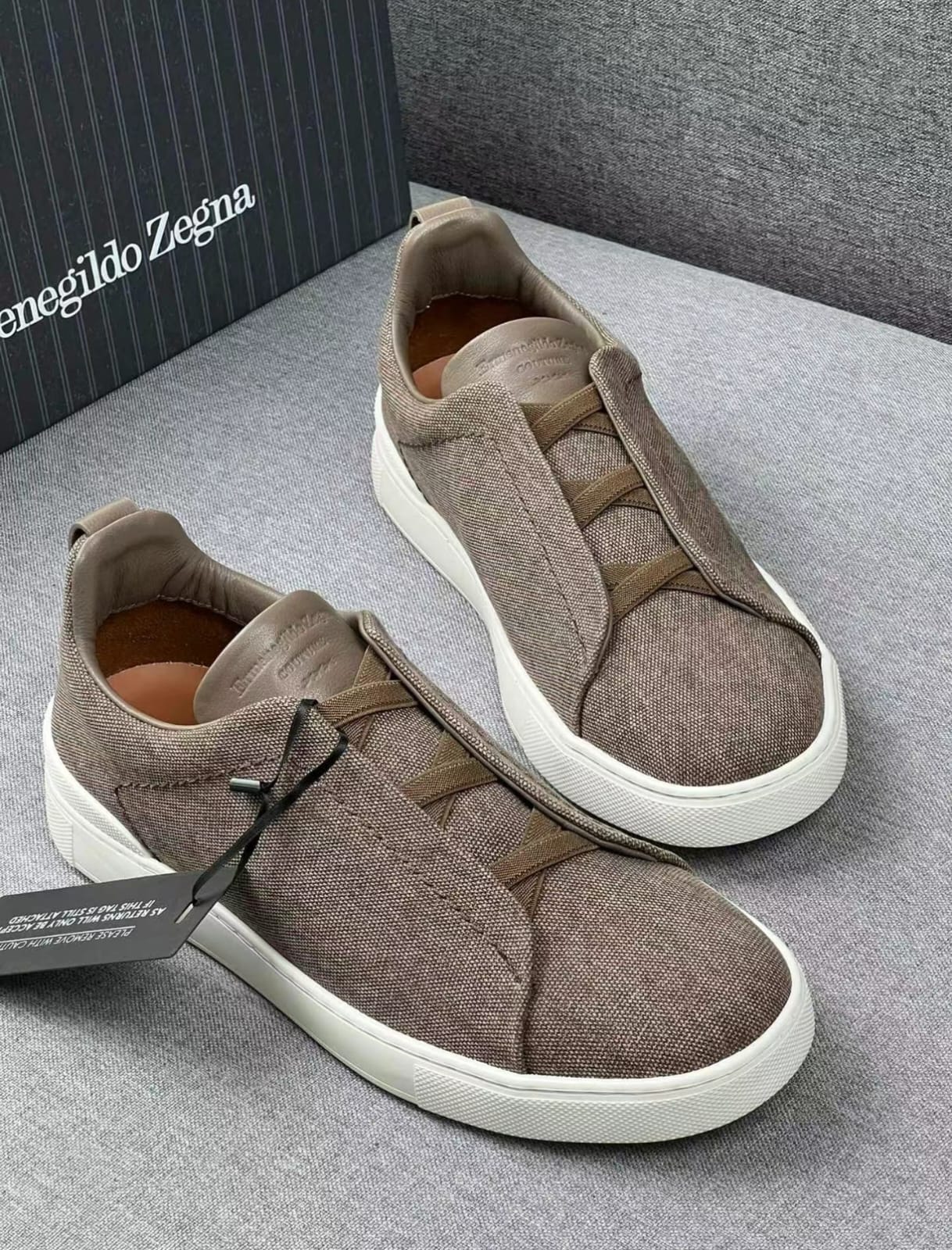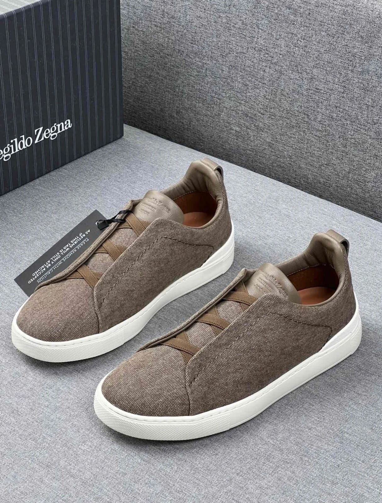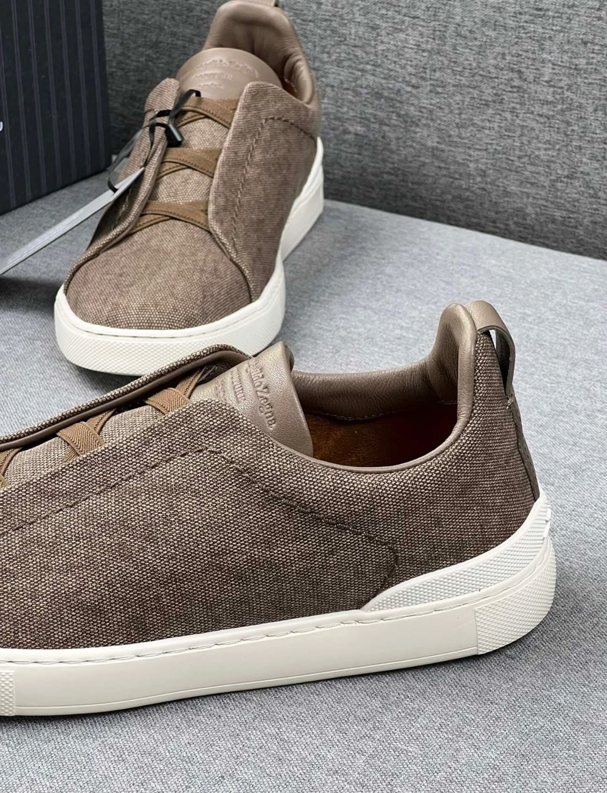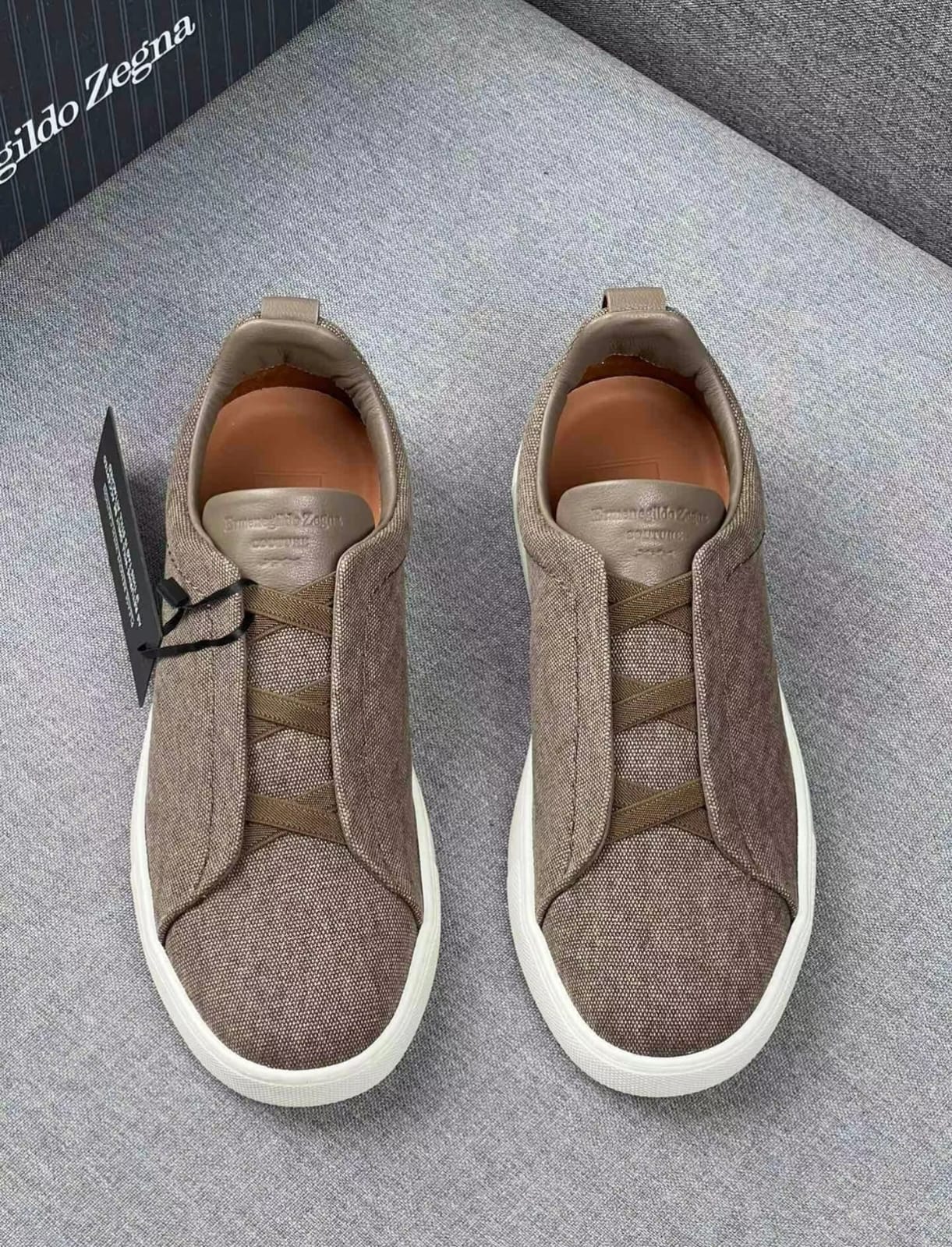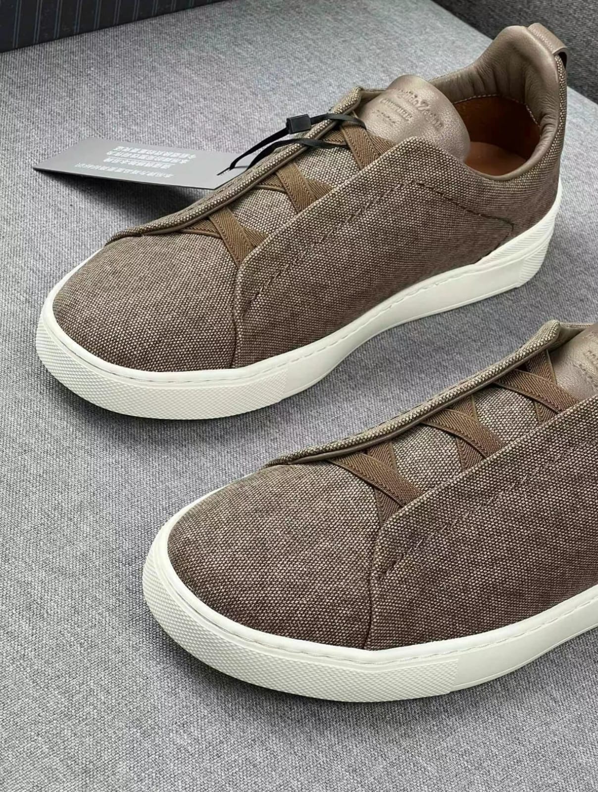 Zegna Triple Stitch slip-on sneakers featuring the signature elastic triple-stitch design. Luxury men’s sneakers with modern minimalist style.